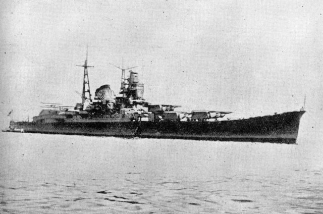 基準排水量8500噸、速力33浬、主砲15.5糎主砲3連装5基15門、12.7糎高角砲8門、魚雷発射管12基